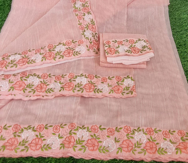 Noil kota light peach color embroidery work saree and blouse