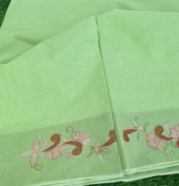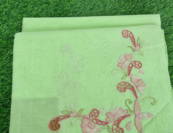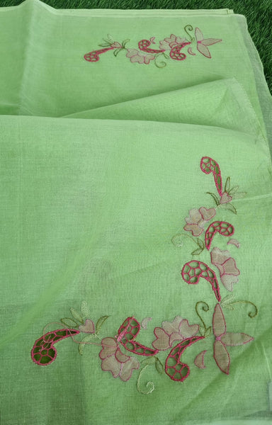 "Graceful Pista Green Noil Kota Cutwork Saree with Matching Blouse"