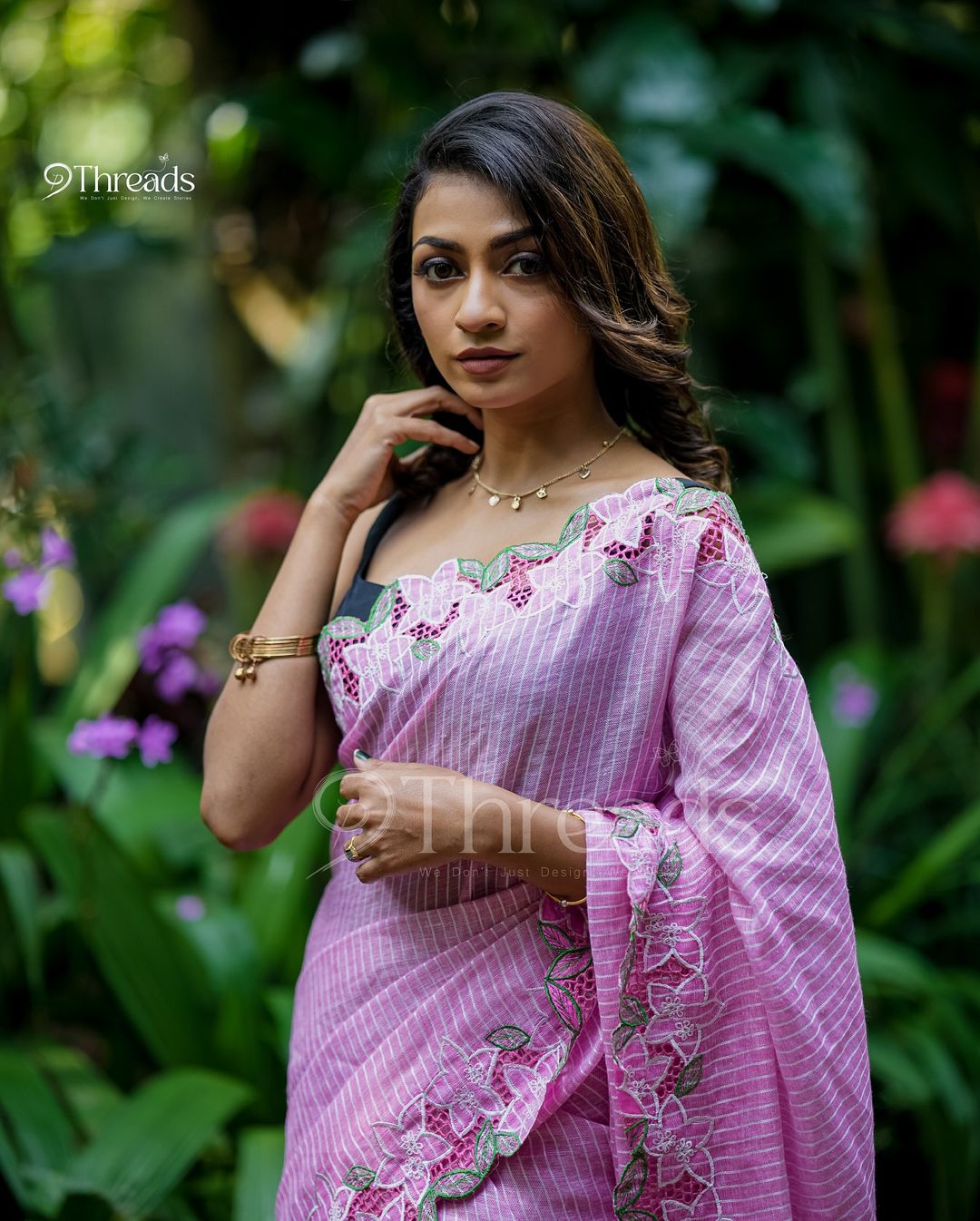 "Crafted in a delicate pink shade, this linen cutwork saree from 9threads showcases intricate cutwork on soft, breathable linen. Lightweight yet elegant, it drapes beautifully for any occasion. Paired with a matching blouse, this saree...