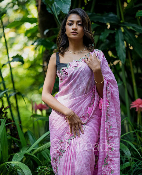 "Delicate Pink Linen Cutwork Saree with Matching Blouse"