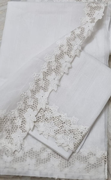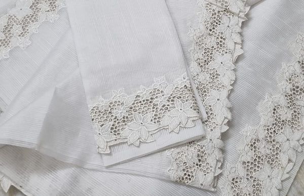 Elevate your style with our stunning white noil Kota cutwork saree, crafted from soft, breathable fabric and adorned with delicate cutwork details. Paired with a matching blouse, this saree exudes timeless grace and sophistication, making it...